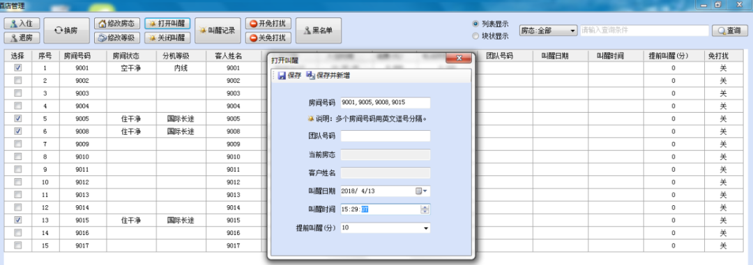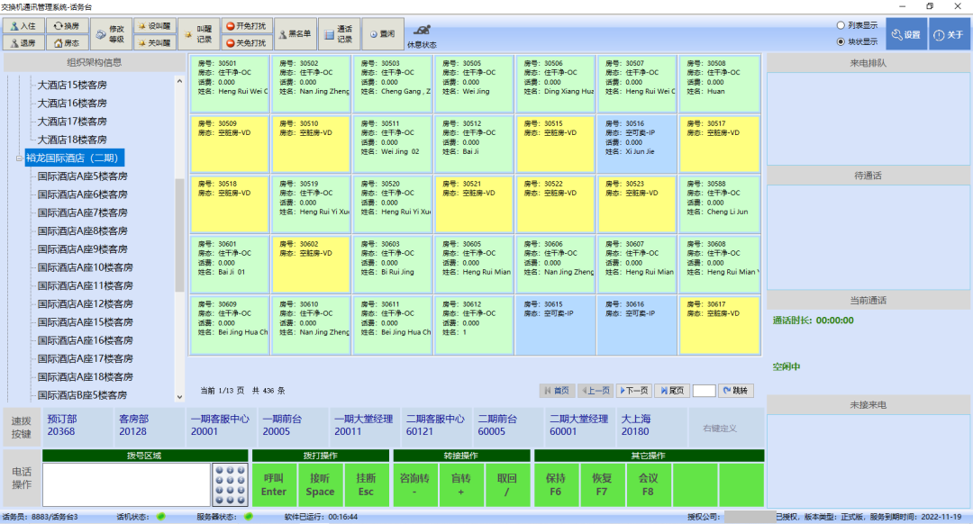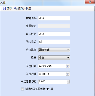 ◈ 入住、退房、换机、分机权限修改