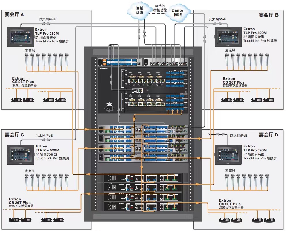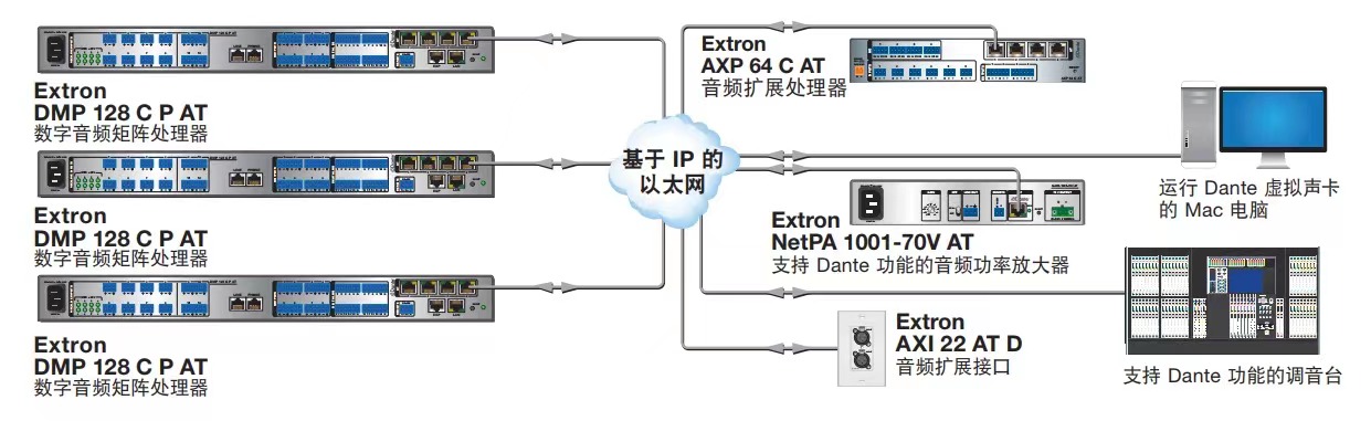 ●Dante 音频网络提供了广泛的扩展功能